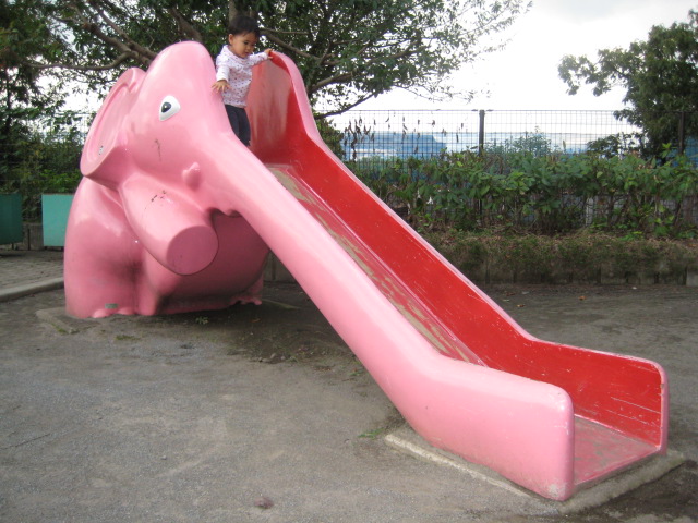 昨日、公園で。宇季ちゃんの初めてのすべり台の図。結構気に入ってました。