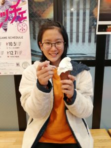 長崎堂で540円もするソフトクリーム買ってやりました。