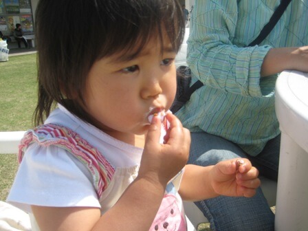 3日連続でお届けした、1歳11ヶ月になる娘が初めてソフトクリームを食べる瞬間でした。
