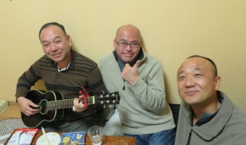 左のギター持ってるオッサンです。高校時代からの友人。本当ありがとう、子供たちはあなたを神さまの様に思ってます。