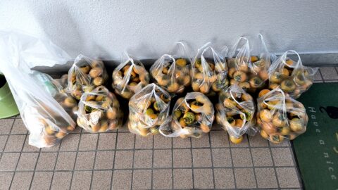 すると15袋あった柿は今朝には4袋まで減り、昼には全て片付きました。