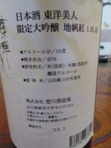 山口県のお酒で「東洋美人 地帆紅」これはぬる燗にして飲むと幾らでもいけるわ。