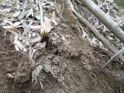 今年初の蚊の大群に襲われながら、掘り進めること1時間。5本の竹の子を発掘しました。