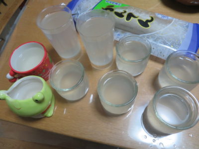 本日は昼休憩時間にこの梅シロップを使って梅ゼリーを作ってみました。棒寒天を買ってきて初めて作ったので要領分からず、嫁さんに手伝ってもらいながらだったけど、楽しく作ることが出来ました。