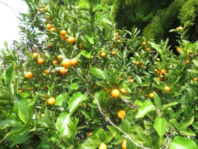 息子が余りに夢中で全然相手にしてくれないので、私は一人戦線離脱。じいちゃんに息子を任せて、一人で畑に。行きがけに金柑が沢山なっているのを見つけたので、一人で金柑狩りをすることに。