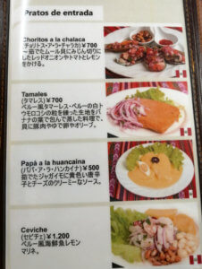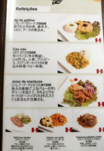 ペルー料理かブラジル料理化は国旗で分かるようになっていて、日本語でどんな料理かも表記してありました。