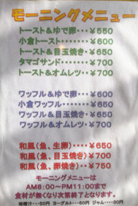 朝飯食べない私には関係ないけど、何人かモーニングを食べにいらしてました。