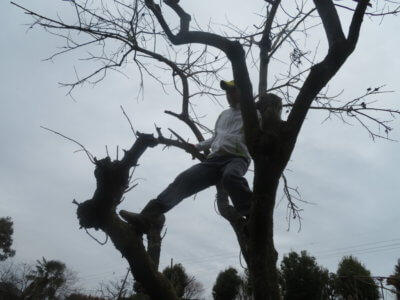 高所恐怖症なのに、何故登らにゃならん。今年も美味しい実を付けてもらう為よ。