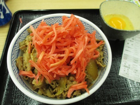 吉野家で大事なのは「紅ショウガ」です。
