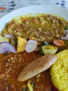 辛さはほとんど無いので、テーブル上にある辛いスパイスで調整して行きます。