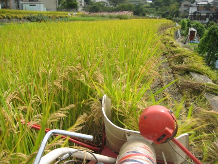 嫁さん・自分・家族のこと 稲刈りに行ってきました 本当は今週の日曜日に稲刈りする予定でしたが、天候悪化が不安視された ため急遽、昨日の金曜日に稲刈りを行いました。 治療院を嫁に任し(とは言え治療は私がするので掛かってくる電話を翌日以降に調整 して貰う役)、朝からせっせと稲を刈る私。 収穫する際の誇らしげな気分は何なんでしょう、農業従事者にしか分からないこの気持ち...
