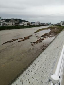川にしか見えませんが、河川敷が沈んでます。