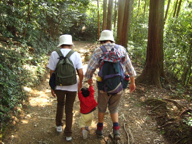上り下りのキツイ場所は背負子に乗せて、比較的歩きやすい場所は歩かせました。