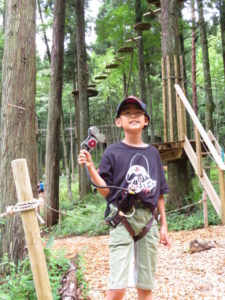 コースは2種類あり、小学校4年生から行けるアドベンチャーコースと、それ未満のキャノピーコースに分かれていました。息子はアドベンチャーコースに挑戦できる権利があるようでしたが、大人の同伴が必要とかですぐに却下。息子一人だけで遊べるキャノピーコースにしました。